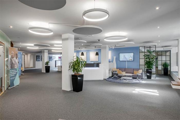 Lokalen rymmer cirka 175 arbetsplatser i stora, öppna kontorslandskap som främjar samarbete och kreativitet. Med 17 mötesrum i olika storlekar finns det också gott om möjligheter att anpassa mötesmiljön efter behov, vare sig det handlar om mindre, privata samtal eller större konferenser och presentationer.