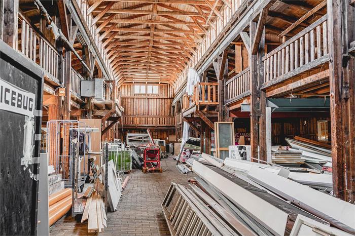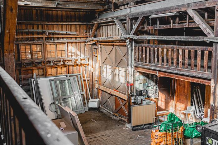 Ladan ligger ute på holmen och består av 400 kvm i nedre plan och 200 kvm i andra plan. Detta kan renoveras till ditt dröm kontor, ateljé eller showroom. Möjligheterna är oändliga.