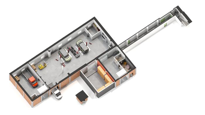 Två lokaler på 207 kvm respektive 107 kvm. Portar ca 3,8 x 4,1 m (HxB) Enklare personalutrymmen med kontor, kök,...