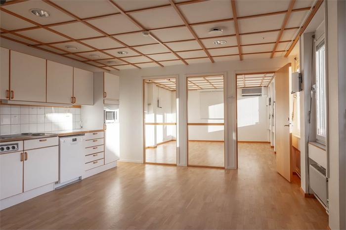 Lokalen består idag av 14 separata kontorsrum, ett stort kök med balkong, konferensrum, RWC och dusch - en komplett lösning för företag som söker både funktionella och trivsamma ytor. Den är lättillgänglig via hiss och kan efter överenskommelse anpassas eller renoveras utifrån verksamhetens behov.