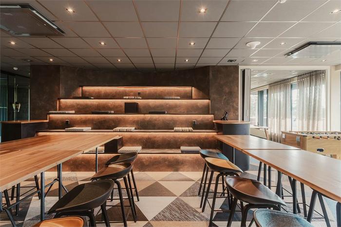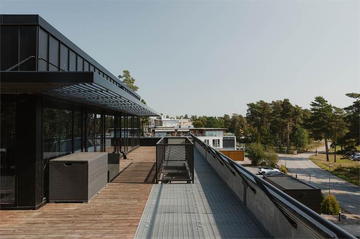 Kontoret har en tydlig wow-känsla med exklusiva materialval, en lounge med gradänger för samlingar och workshops, pingisbord för energigivande pauser samt en stor uteplats där ni kan njuta av solen, utsikten och gemenskapen.
