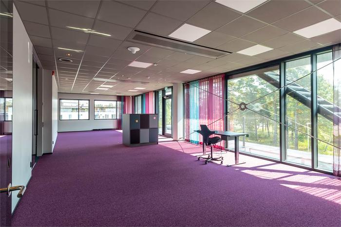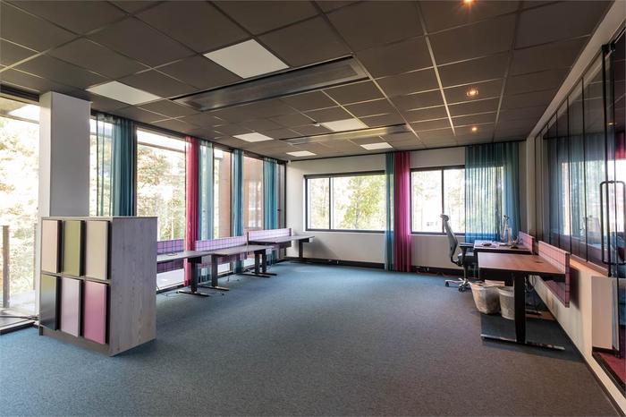 Det naturnära läget vid vattnet bjuder på möjligheten att ta ett dopp på lunchen, medan den närliggande skogen ger utrymme för avkopplande promenader eller promenadmöten. Smidig parkering gör vardagen enkel för både personal och gäster.