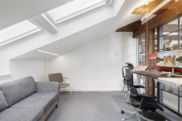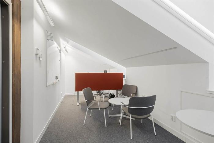 Planlösning:Här välkomnar ett helt nyrenoverat och modernt inrett kontor med flertalet kontorsplatser med fina gemensamma ytor i kök och konferensrum. Tack vare läget högst upp i huset med tak upp i nock samt glasade partier från kontorsrummen ges ett mycket fint ljusinsläpp. Kontoret har 7 kontorsrum i varierande storlek, konferensrum , fullt utrustat kök i öppen planlösning med loungedel och plats för större konferensbord. Handikappsvänlig WC med dusch finns i anslutning till entré och hiss finns bekvämt från markplan. Tillgång till parkering finns i anslutning till fastigheten. Läget på lokalen bör tilltala dig som söker en plats där all service och tågstationen finns på nära gångavstånd.