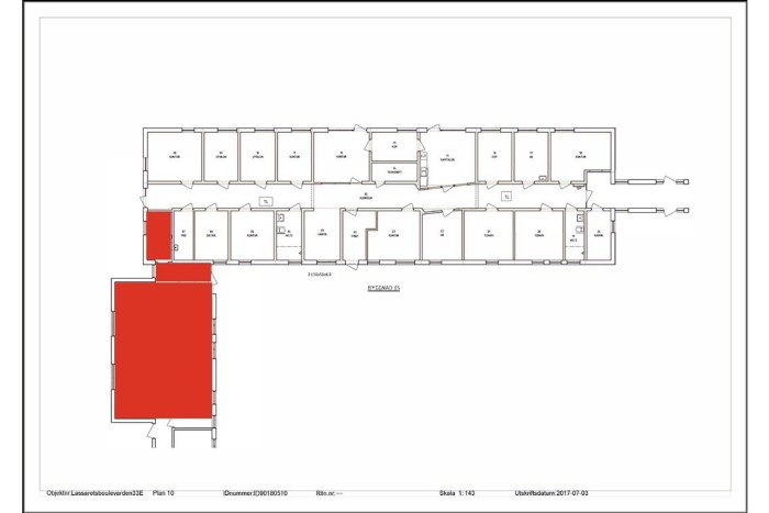 Lassaretsboulevarden33E-Plan10 - röd markeringKontor, 362 m2, Kristianstad, Hemhult