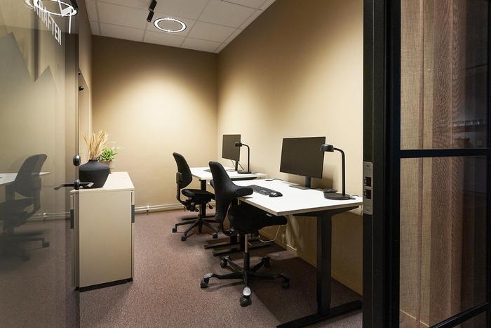 Lokalen har moderna kontorsrum och mötesrum. Lokalen har ljusa toner samt fint ljusinsläpp från stora fönsterpartier.