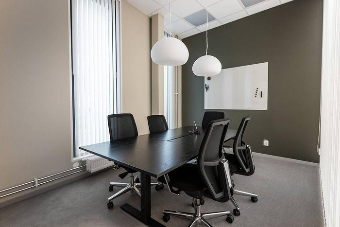 Det finns utöver de gemensamma ytorna rum som passar för möten och konferens samt ett stängt kontorsrum för avskildhet och digitala möten.