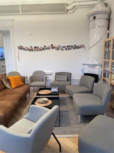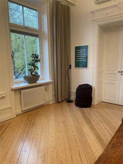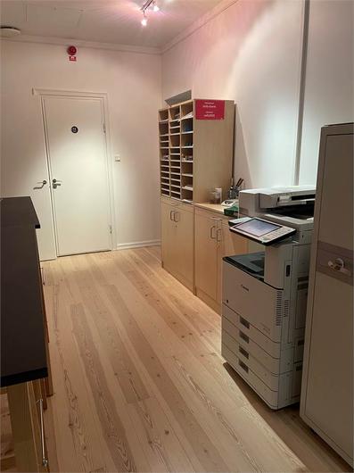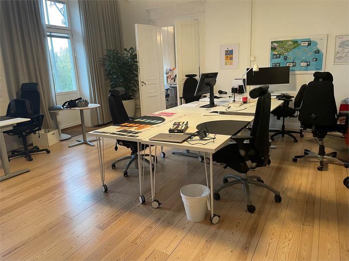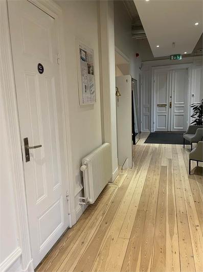 Vackert kontor med flera rum i fil, balkong och många tidstypiska detaljer bevarade såsom höga pardörrar och ett flertal kakelugnar! Personalentré och pampig kundentré. Stora rum med möjlighet till många arbetsplatser. Trevligt kök med plats för många i lunchrummet. Fint renoverade toaletter/WC. Vackert och elegant som sagt - Välkomna!