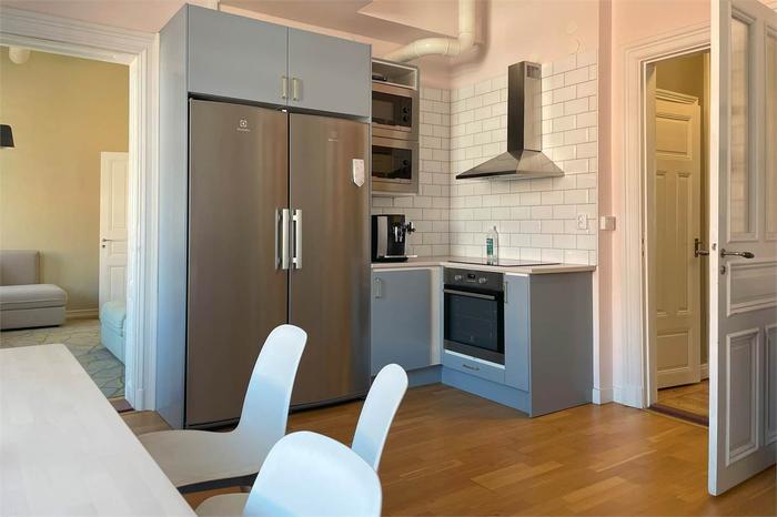 Nära till ett flertal lunchrestauranger, caféer och bland annat ett gym längre ner på gatan.