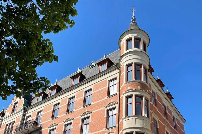 Vacker kontorslokal i anrika "Miljonpalatset" med flera rum i fil, balkong och många tidstypiska detaljer bevarade såsom höga pardörrar och kakelugnar. Stora rum med möjlighet till många arbetsplatser. Pentry/Kök med plats för många. Renoverade toaletter. Ytorna är flexibla och idag finns möjlighet att nyttja två plan om vardera ca 300 kvm (dvs en totalyta om cirka 600 kvm).