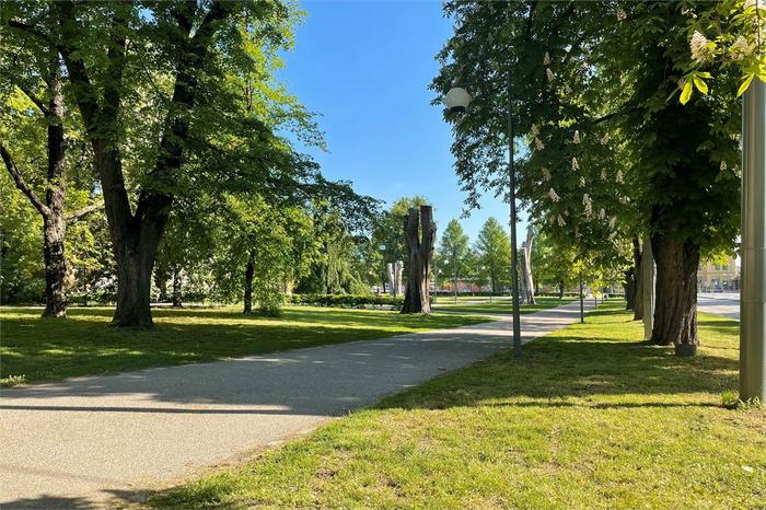 Fin park intill och en mycket kort promenad till Resecentrum och stadens citykärna.