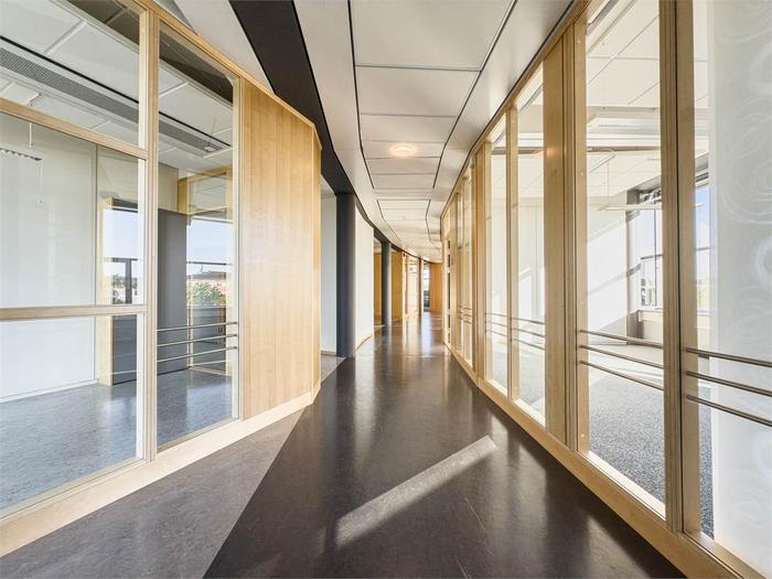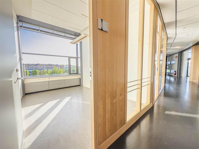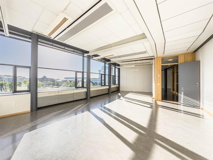 På tredje våningen finns en ledig lokal om ca 350-700 kvadratmeter med kontorsyta.