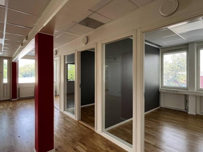 Planlösning:Mestadels rumsindelad kontorslokal.