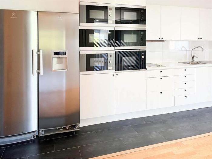 Goda kommunikationer med egna p-platser i garage, stort parkeringshus i direkt närhet samt stadsbuss som stannar utanför entrén.