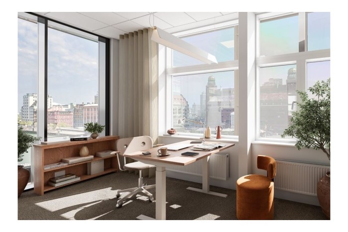 Här kan man från delar av kontoret blicka ut över havet och vimlet vid Malmö C vilket ger en helt fantastisk känsla.