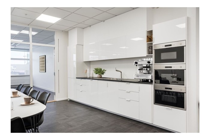 Befintlig planlösning idag är till stor del öppna landskap men självklart med konferensrum och mötesrum i varierande storlekar. I lokalens mitt finns kontorets pentry och där samlas personalen naturligt när det är dags för lunch eller fika.