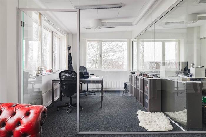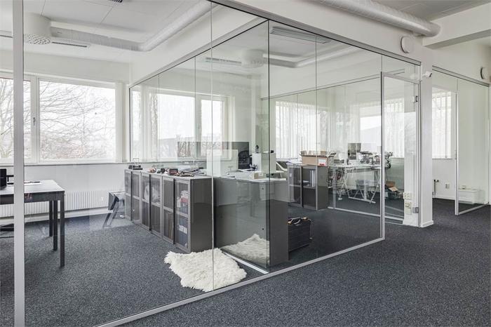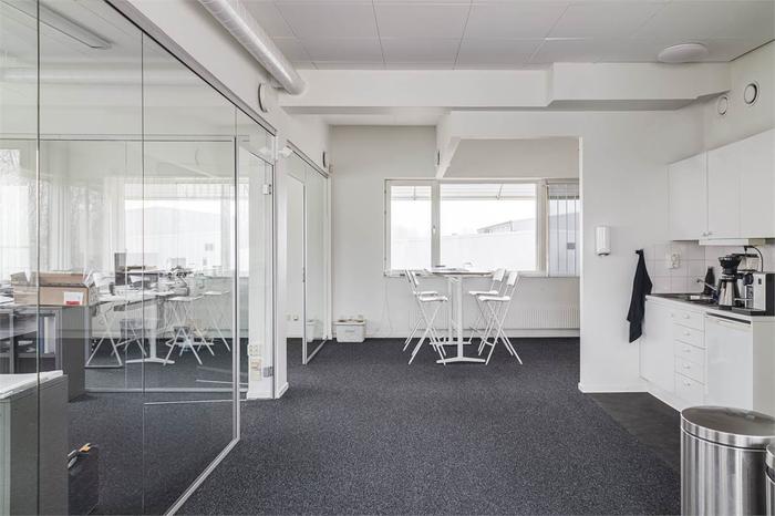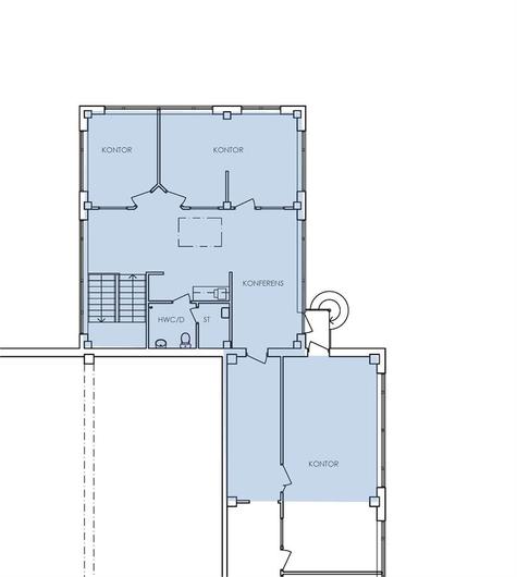 Lagerytan i markplanharöppen planlösningoch nås viaegen markport, vilket ger smidig in- och utlastning samt god tillgänglighet.Kontorsdelen om 126 kvmär belägen på plan två och nås via en interntrappa. Här erbjudsmoderna och ljusa kontorsytormed generösa glaspartier som skapar en luftig och professionell arbetsmiljö. Planlösningen består av kontorsrum i varierande storlekar, mötesrum samtpentry/kök, städförråd, dusch och WC.