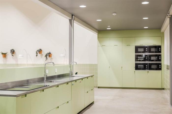 Moderna personalutrymmen:WC, omklädningsrum/dusch, stort pausrum med kök och terrass