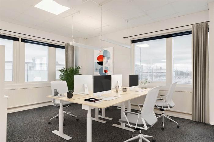 Här erbjuds möjlighet att hyra en flexibel kontorslokal i gott skick på plan två. Planlösningen består av öppet kontorslandskap med möjlighet till 4-6 kontorsplatser, fyra kontorsrum samt konferensrum med plats för 8-10 personer. Faciliteter finns i form av kök/pentry med anknytning till det öppna landskapet samt WC med dusch. Lokalen är utrustad med energibesparande LED-belysning och har genomgått en ytskiktsrenovering 2023, vilket gör den inflyttningsbar omgående.