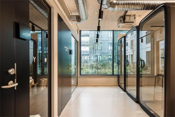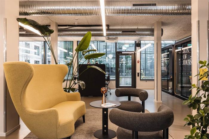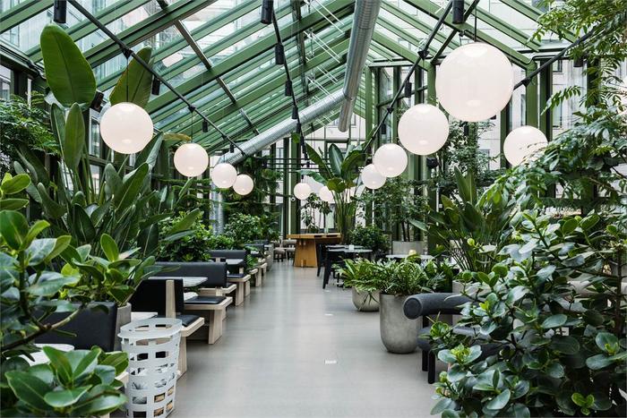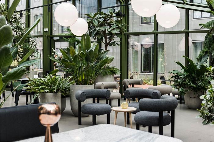 Kontoret erbjuder ett öppet landskap med flera mötesrum, gott om plats för arbetsstationer och sociala ytor, samt några telefonbås - en flexibel och samarbetsvänlig arbetsmiljö. Det gröna orangieriet är en hyrbar lokal vid särskilda tillfällen, lämplig för event eller andra tillställningar!