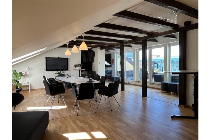 Lokalen erbjuder ett stort kök med plats för stor social yta, två fina konferesrum som vätter ut mot Malmös inlopp. Stora öppna ytor med plats för öppen sittning. Två toaletter finns att tillgå.