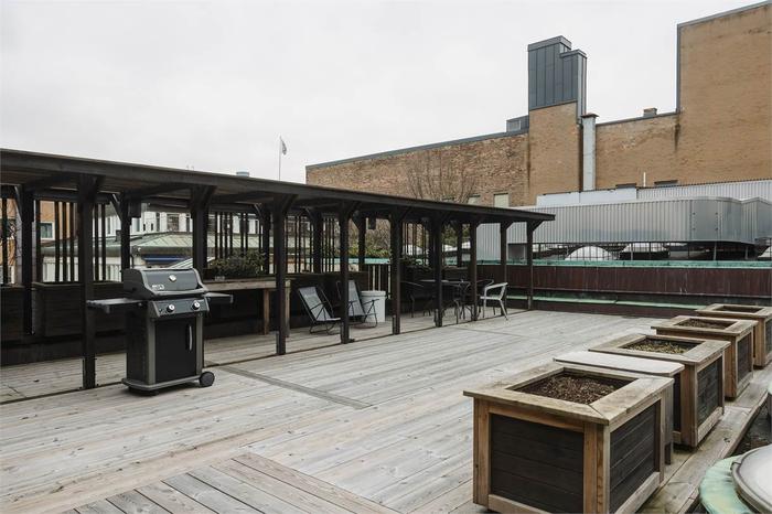 Det som särskiljer denna kontorslokal är dess privata takterrass, vilket ger möjlighet till grillning, avkoppling och möten utomhus med personal eller kunder.