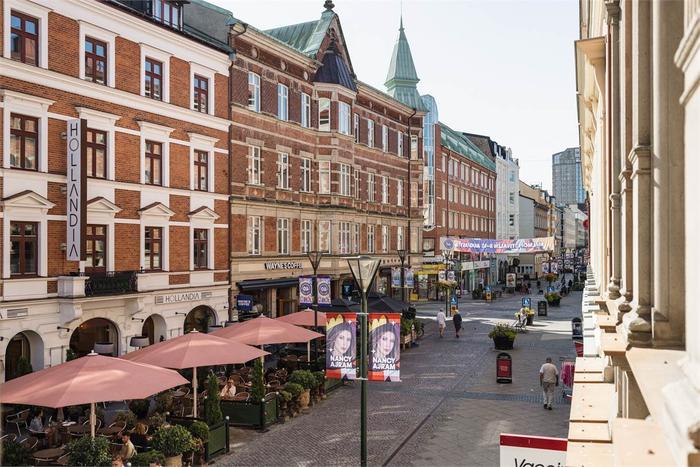 Två balkonger vetter mot den lugna innergården, medan utsikten mot gågatan ger stadspuls och närhet till allt Malmö centrum har att erbjuda.
