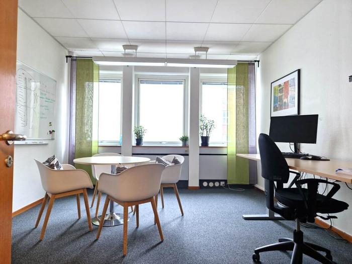 Här finns flera rum i olika storlekar som kan anpassas efter ditt företags behov. Dessutom finns ett välutrustat pentry där du kan sitta ned och njuta av din lunch.