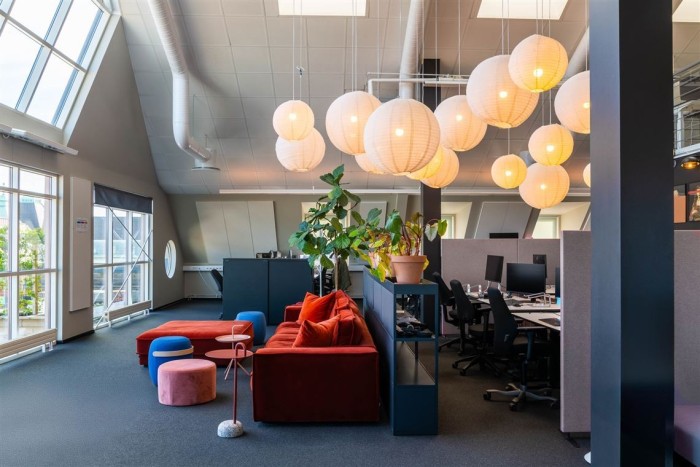 Plan 6: 690 kvm. En bra mix av egna kontorsrum och öppet landskap. Stor loungeyta innan man kommer ut till den egna takterrassen.
