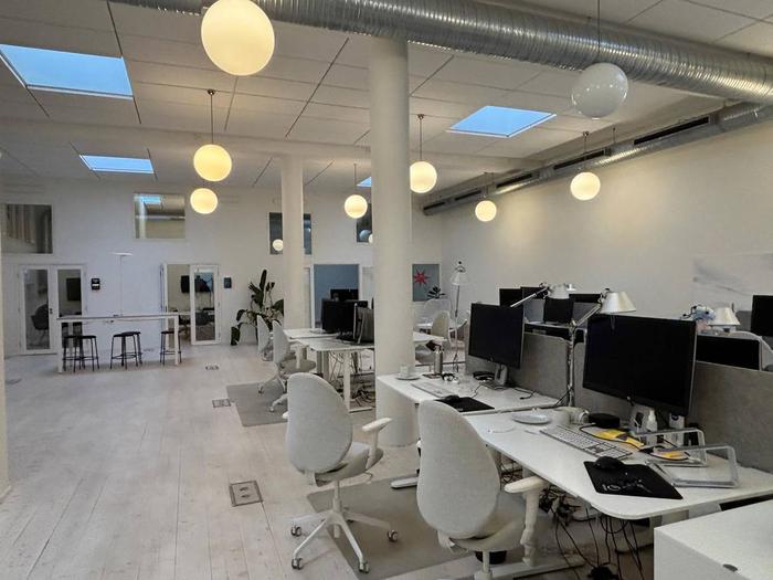 Mestadels öppen planlösning med kontors- och mötesrum i lokalens bakkant.