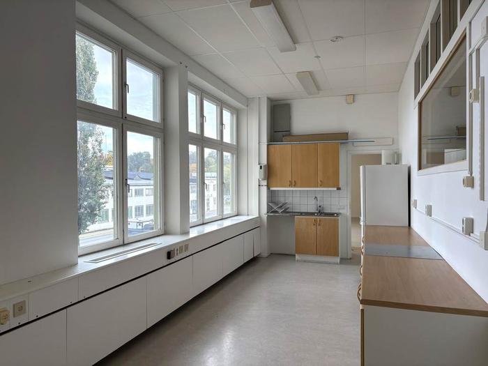 Detta är en trevlig kontorslokal med ett flertal rum med bla wipeboard samt två mindre kök. Lokalen mäter total 430 kvm men kan delas upp i 2 enheter med ytorna 150 kvm och 280 kvm - hyr den som passar ditt behov bäst.