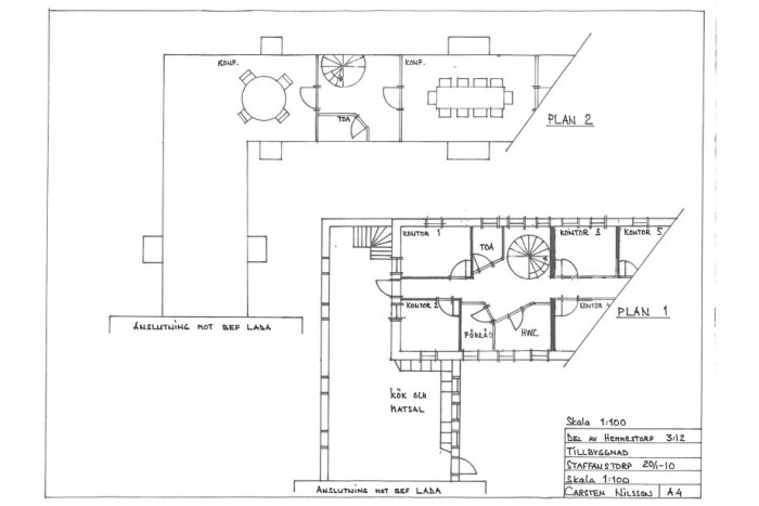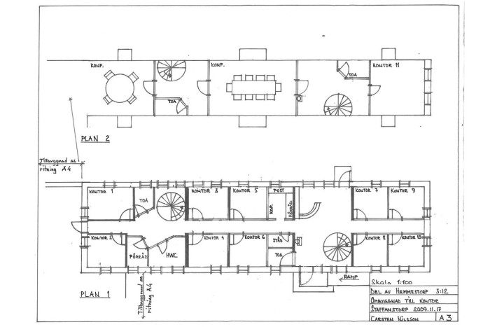 Kontorsdel 1 – Klassisk kontorsstruktur i två plan (226 kvm + 151 kvm)