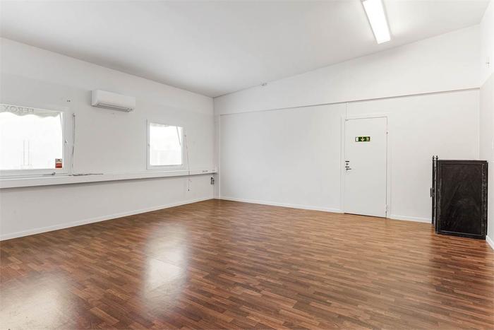 Här finns två lediga kontorslokaler i gott skick, belägna en trappa upp i trevlig fastighet. Lokalerna om 87 respektive 302 kvm kan hyras var för sig, eller tillsammans som en hel enhet om 389 kvm. Det finns stora möjligheter att ändra planlösningen och anpassa lokalerna enligt hyresgästens önskemål, exempelvis kan väggar rivas för att skapa mer öppen yta för exempelvis kontorslandskap och lounge/gemensamhetsyta.