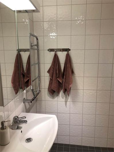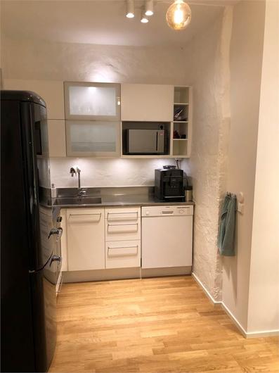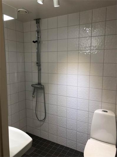 Kontoret har en hel köksdel med fullt utrustat kök samt en fräsch toalett med dusch.