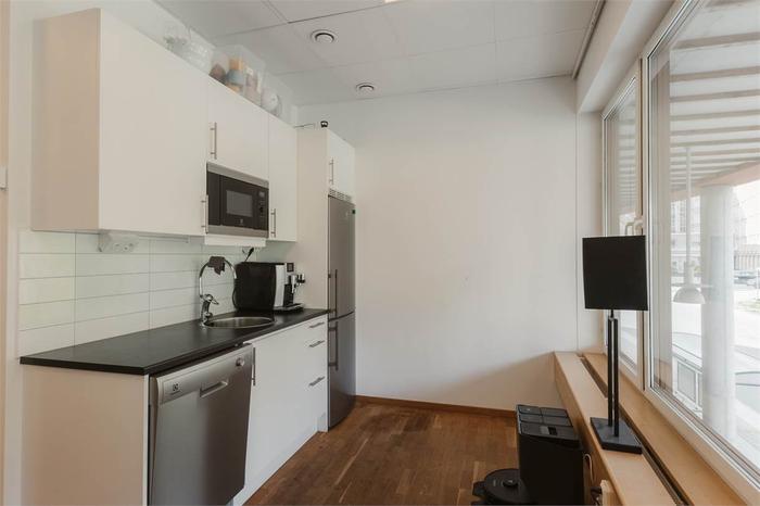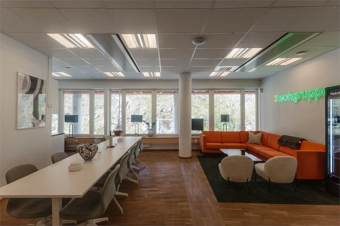 Lokalen har en välkomnande entré med lounge och ett pentry med matplatser - perfekt för både avkoppling och informella möten. Här finns även ett öppet kontorslandskap med plats för 6-8 personer, ett separat kontorsrum och ett rymligt konferensrum för upp till 15 personer. Stora fönster släpper in rikligt med dagsljus och skapar en inspirerande arbetsmiljö.