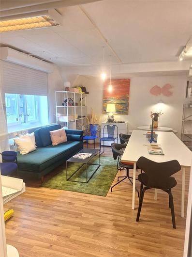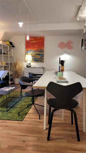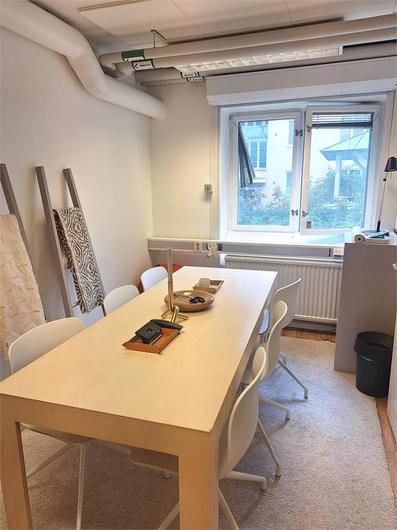 Stort rum med plats för 3-4 skrivbord samt mötesbord eller matbord/lounge.