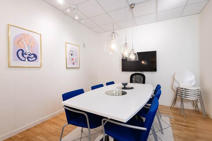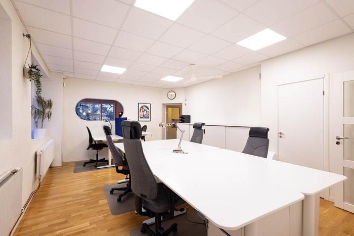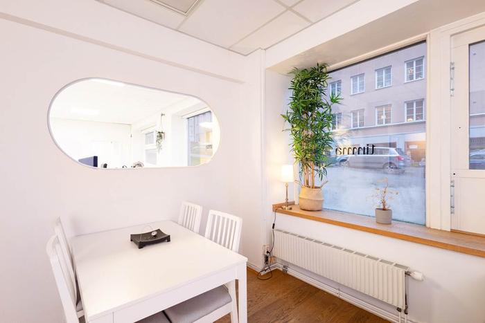 Planlösningen är flexibel och erbjuder flera rum som lätt kan anpassas efter olika typer av verksamheter. Lokalen har tidigare använts som kontor och rymmer både större arbetsytor och mindre rum för möten, telefonsamtal eller konferenser. Det finns ett mindre rum med pentry och matplats, vilket ger en hemtrevlig känsla och en praktisk arbetsmiljö. Även wc med dusch finns.I detta avtal ingår ett förråd om 10 kvm beläget i fastighetens källare.