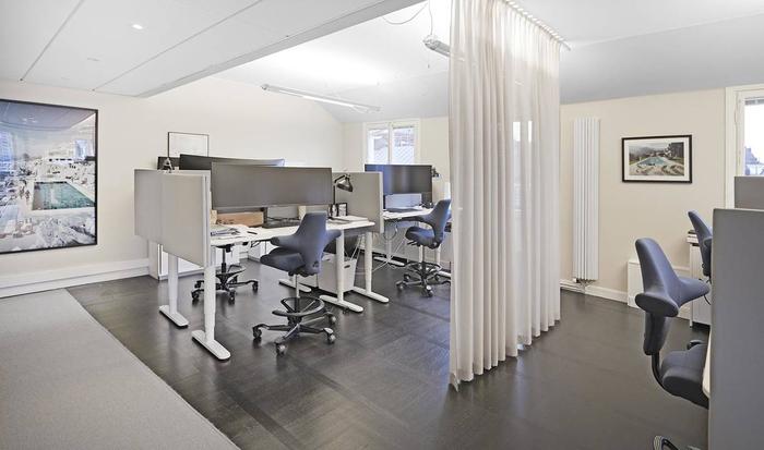 Planlösning:Öppet landskap, kontor för 2 pers. Mötesrum i varierade storlekar och rymligt pentry.