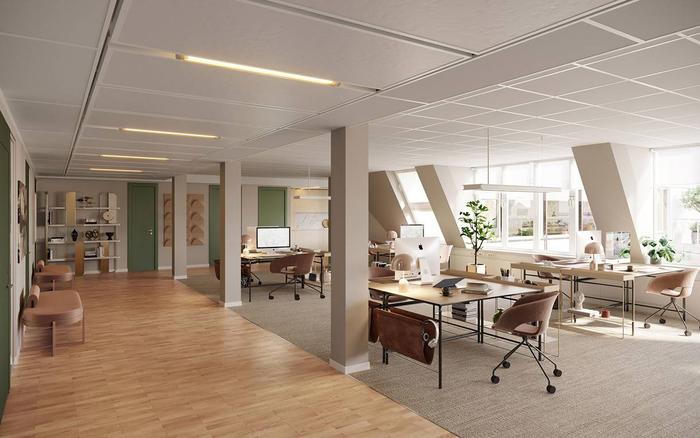 Eftersom fastigheten är pelarkonstruerad erbjuds stor flexibilitet vad gäller planering och disposition. Ni väljer själva om ni vill sitta i öppna landskap eller avdelat i mindre enheter - allt efter vad som passar bäst för er verksamhet. Materialen håller genomgående hög standard och oavsett hur ni väljer att inreda ert kontor får ni det senaste inom belysning och ventilation.