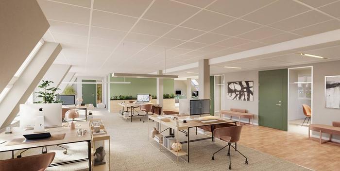 Planlösning:Luftig lokal högst upp i huset. Möjlighet till bra mötesutrymmen och effektiv kontorslösning. Takterass med utgång direkt från lokalen.