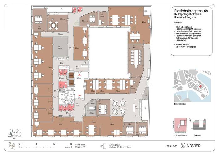 Planlösning:Effektiv planlösning med möjlighet till många arbetsplatser, möten och mötesplatser. En interntrappa kommer att byggas mellan våningsplanen.