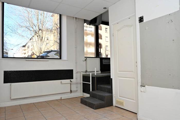 Egen entré från gatan. Lokalen har idag en rumsindelad planlösning, men det är möjligt att skapa en öppen planlösning.