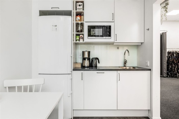 Lokalen är utrustad med pentry, två WC som båda har dusch samt ena förberedd för tvättmaskin.