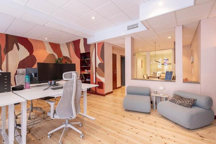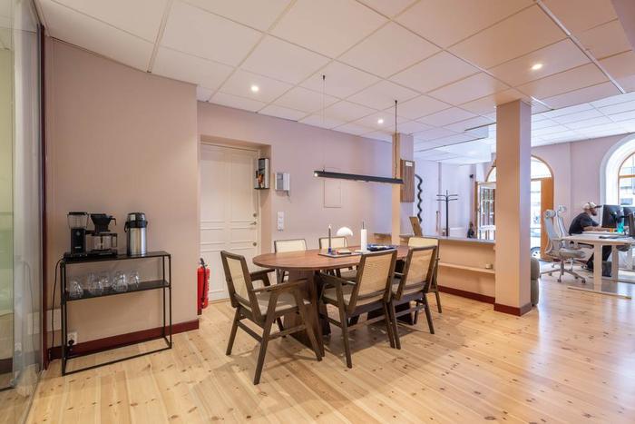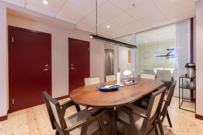 Via en inbjudande entré från Döbelnsgatan kliver man in i en ljus och rymlig del av lokalen. Här möts man av ett vackert originalgolv i trä samt ett tak med ljudabsorberande paneler och infällda spotlights. De generösa fönsterpartierna mot gatan skänker gott om dagsljus och skapar en trivsam arbetsmiljö. Längre in finns två välskötta WC, yta för matplats samt två separata mötesrum med glasväggar.