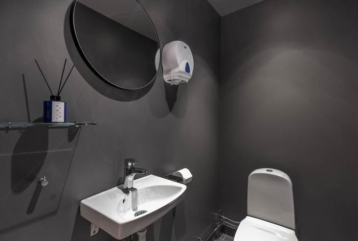 Lokalen har också ett separat utrymme med helkaklad dusch. Den installerade mekaniska ventilationen bidrar till ett behagligt inomhusklimat året runt.