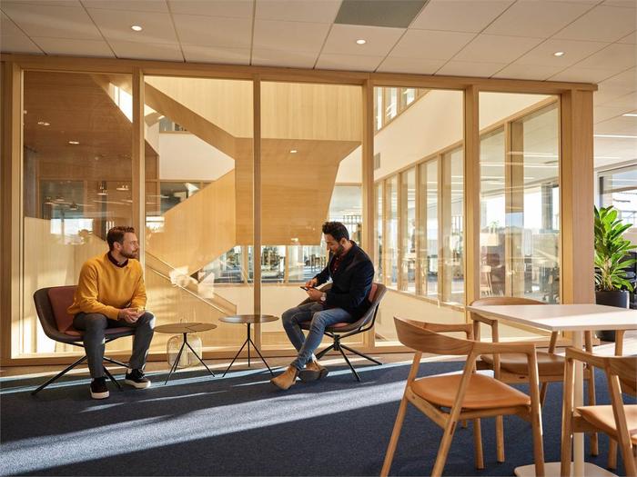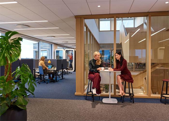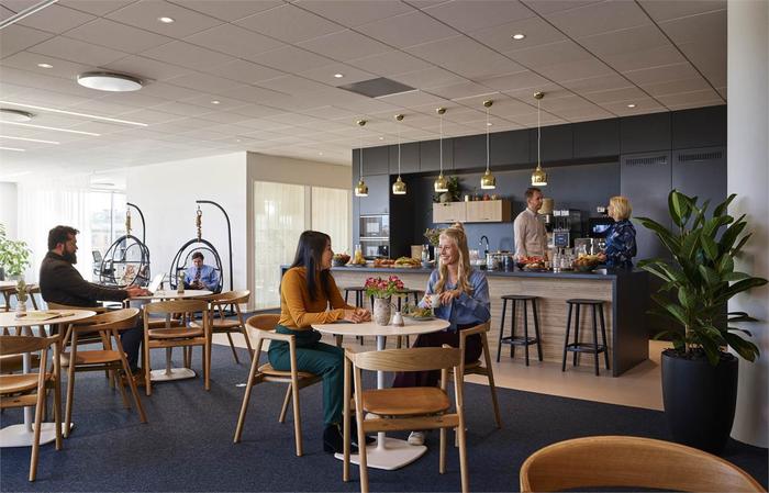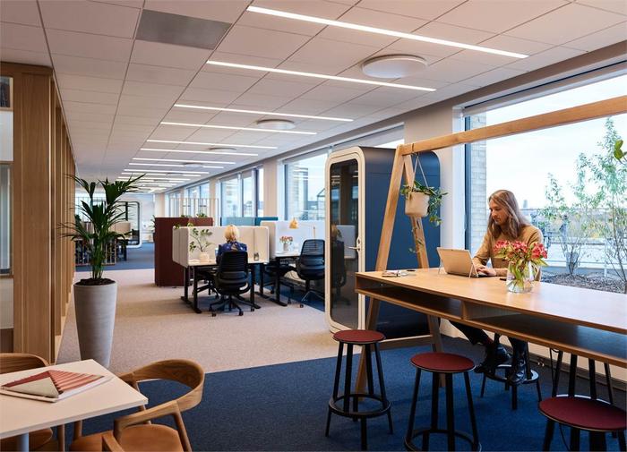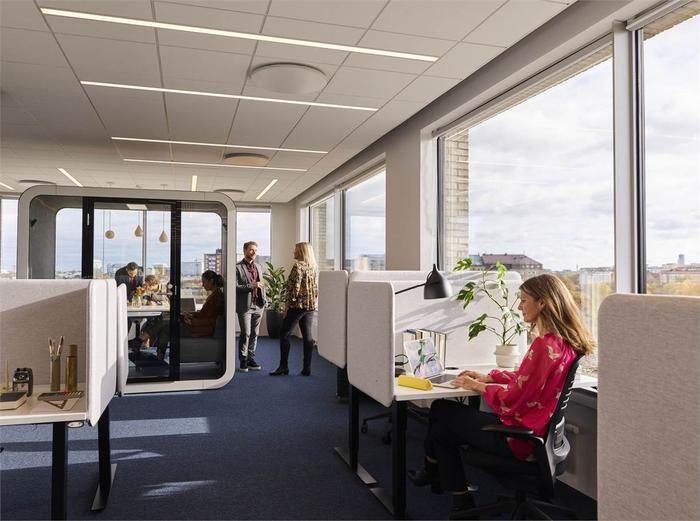Här erbjuds en aktivitetsbaserad arbetsmiljö i öppet kontorslandskap, privata kontorsrum, tillgång till ljudisolerade telefonbås och fyramansbås som får nyttjas fritt samt bokningsbara konferensrum. Anläggningens hyresgäster och medlemmar har 20 % rabatt på konferensrumsbokningar. På plan 7 finns ett mycket trevligt pentry och lounge samt utgången till den stora terrassen. På terrassen finns ett inglasat uterum där det är varmt och skönt även på höst som vår. Anläggningen erbjuder också duschmöjligheter.