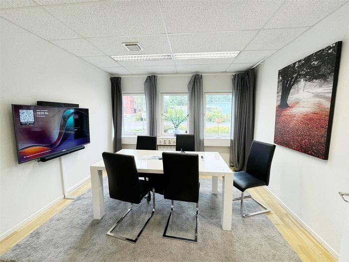 Fönster i två väderstreck ger ett generöst ljusinsläpp och en trivsam arbetsmiljö. Lokalen är utrustad med ett rymligt kök, WC samt förråd. P-plats finns att tillgå för både personal och besökare.