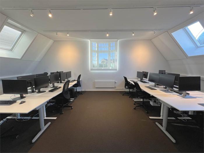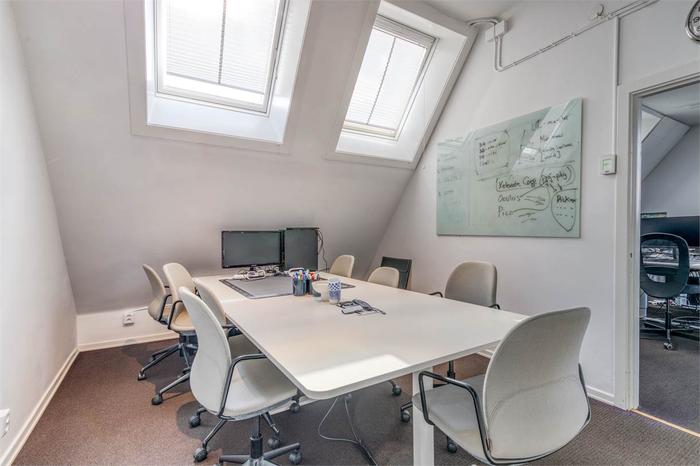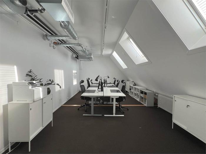 Kontoret har ett gott klimat med fjärrkyla och ventilation för minst 16 personer.