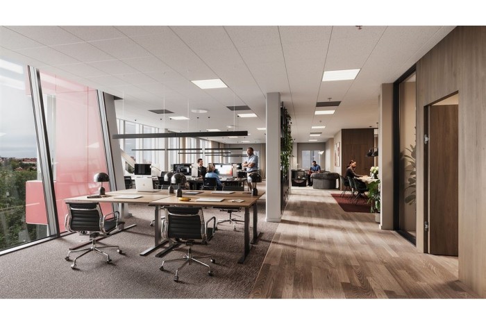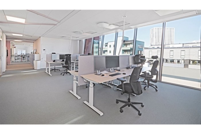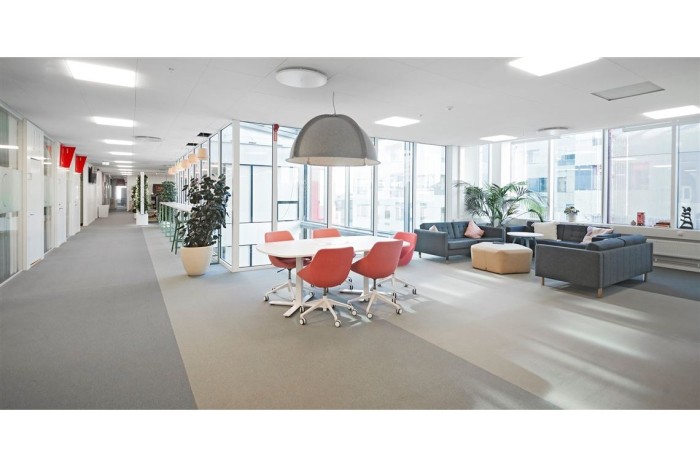 Denna typ av lokal är sällan förekommande. Med sina tre stora kontorsplan med egen, jättestor, takterrass på topfloor är här kontoret för det stora företaget. Genomgående fina ytskikt och varierad, effektiv planlösning.