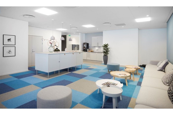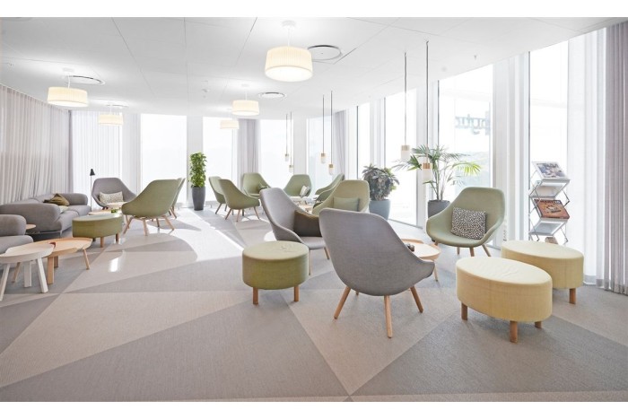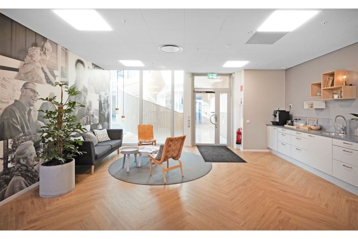 Rikligt med ljusinsläpp med stora fönster. Blandad planlösning med mycket öppenhet. Välkomnande, representativ entré längst Evenemangsgatan med rymd och takhöjd som imponerar, här finns gott om loungeyta. Material och inredning är valt med omsorg och får en att trivas!