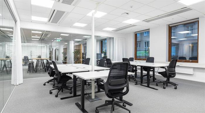 De privata, fullt utrustade kontoren har allt som du eller ditt team behöver för att jobba effektivt. Rummen är inredda bl.a. med elektroniska bord och ergonomiska stolar och skåp. Du kan också använda fritt ca 1700 kvm av inspirerande coworking-utrymmen utöver ditt privata kontorsrum. Med United Spaces-medlemskapet kan ditt team njuta av alla våra tjänster, bekvämligheter och evenemang.